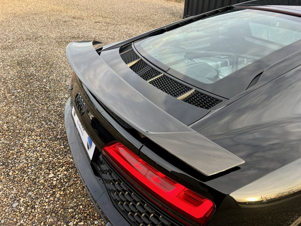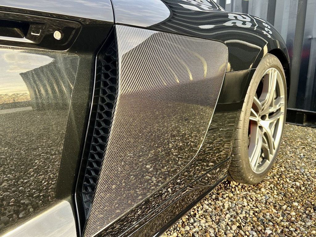 Deze R8 is voorzien van een uitgebreide lijst aan opties, waaronder hoogwaardige carbon accenten, een luxueus afgewerkt interieur, geavanceerde infotainment- en veiligheidssystemen, keramische remmen en diverse performance-upgrades.